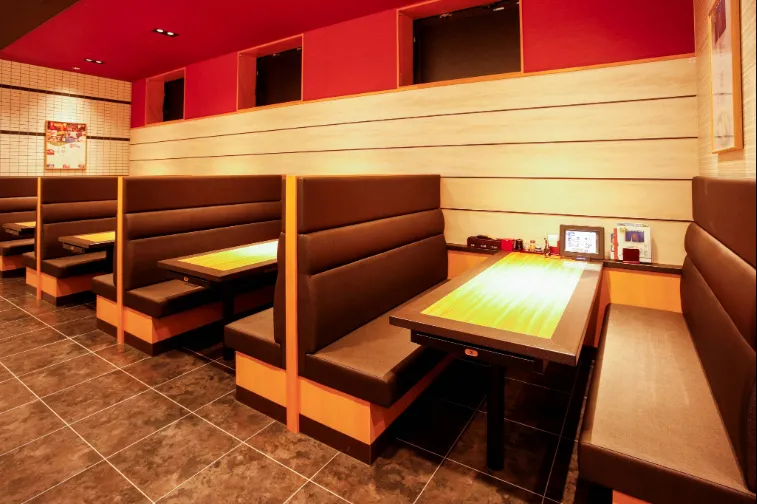 118席 カウンター 6席 テーブル席 48席(6名様掛け×8テーブル) 離れテーブル席 44席(4名様掛け×2テーブル、6名様掛け×6テーブル) 離れ個室 20席(10名様掛け×2室)