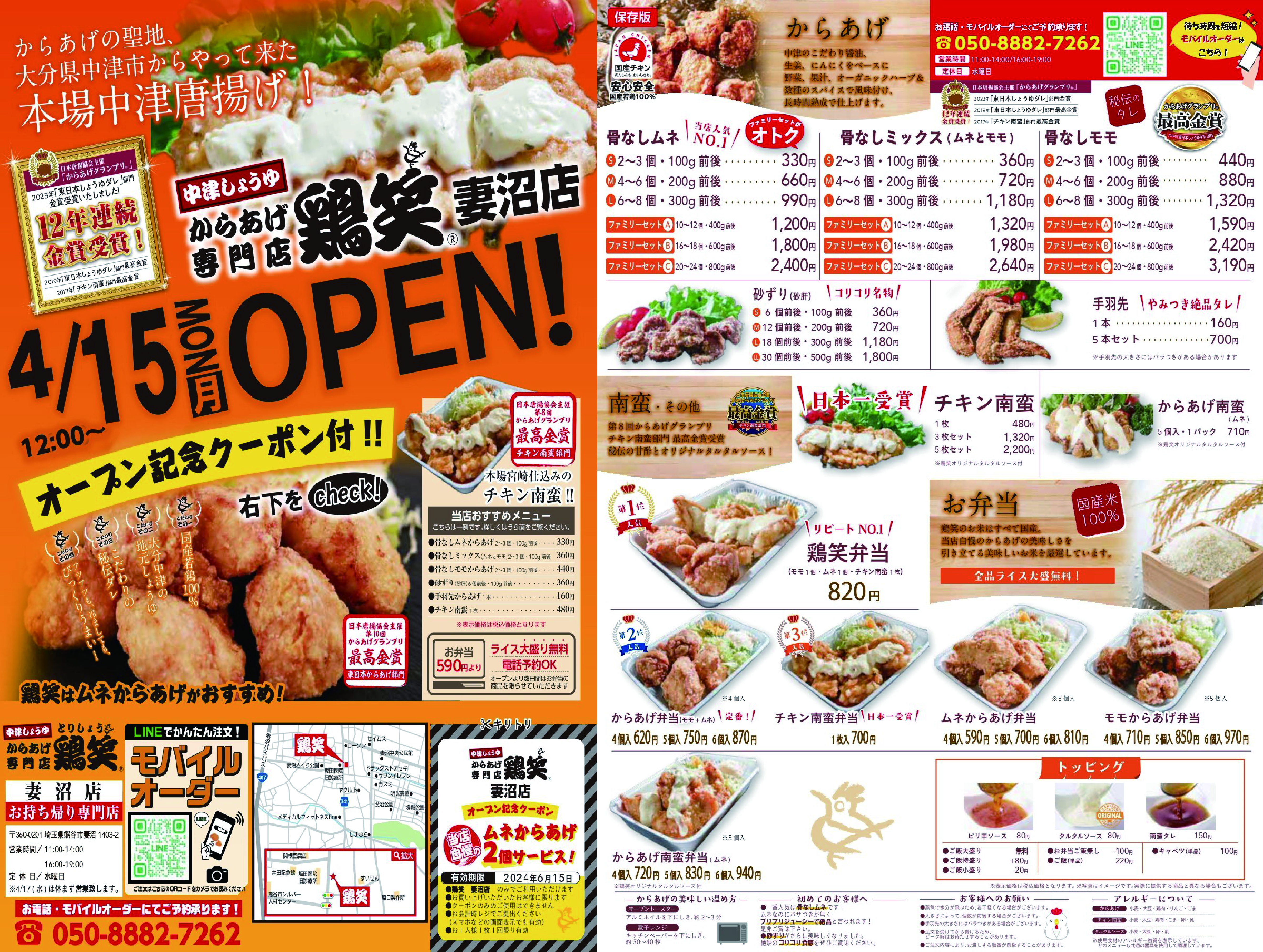 4月15日 鶏笑 妻沼店(埼玉県) オープン!