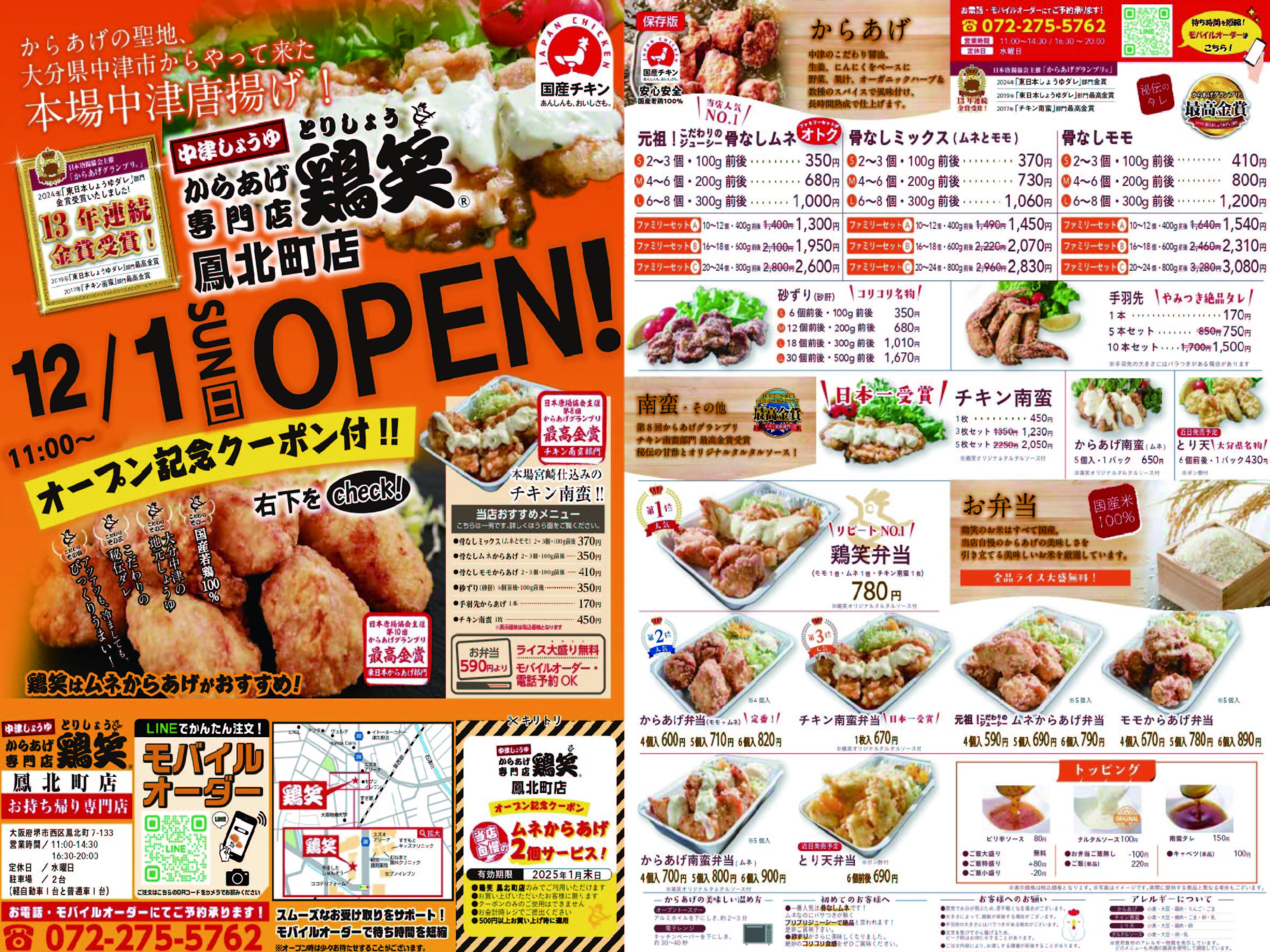 12月1日 鶏笑 鳳北町店(大阪府)オープン!