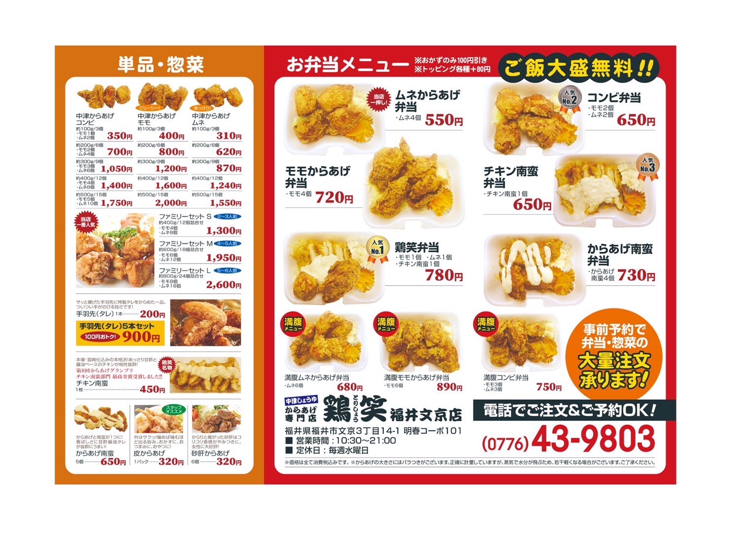 からあげ専門店 鶏笑 福井文京店の最新情報一覧